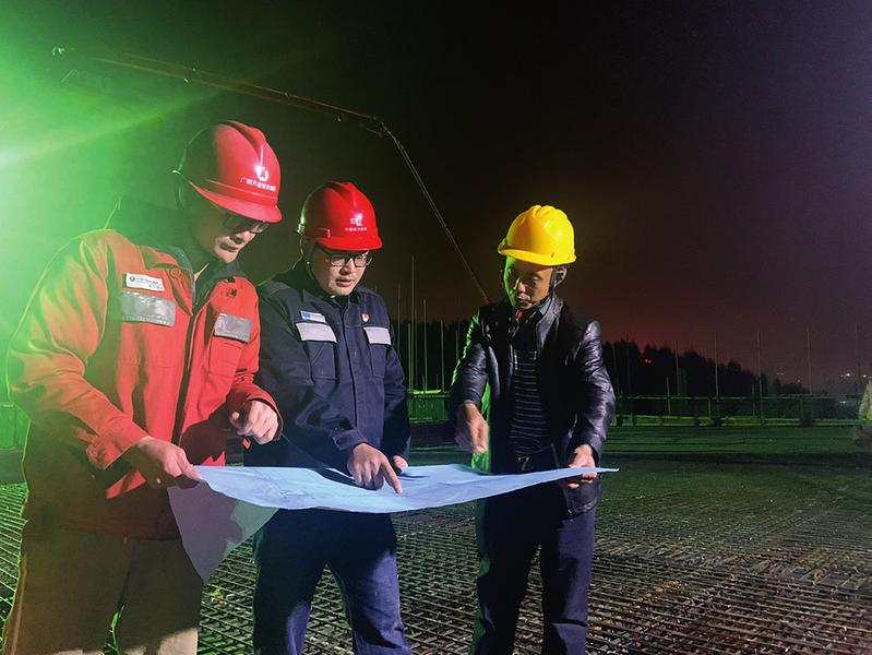 南宁电网工作人员日夜奋战220千伏利华送变电工程建设。(左召南摄)