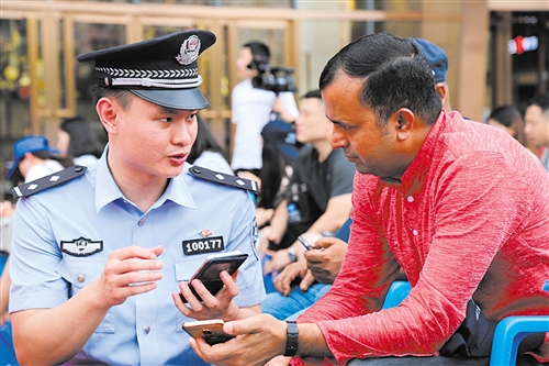 民警和外国友人交流移民新政 (警方供图)