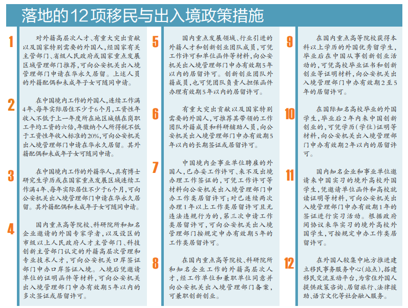 符合条件外国人可申请在华永久居留