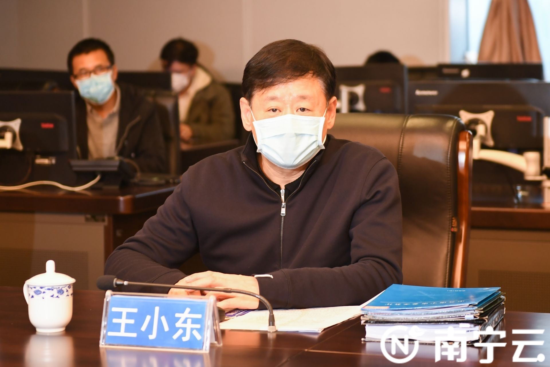 自治区党委常委、市委书记、市疫情防控工作领导小组组长王小东在南宁分会场参加会议并就南宁市贯彻落实工作提出要求。记者陈麒元摄