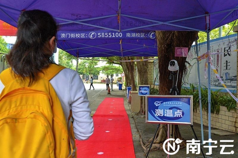南宁市第二十九中学校门口配备有热成像体温检测仪。黄维业摄