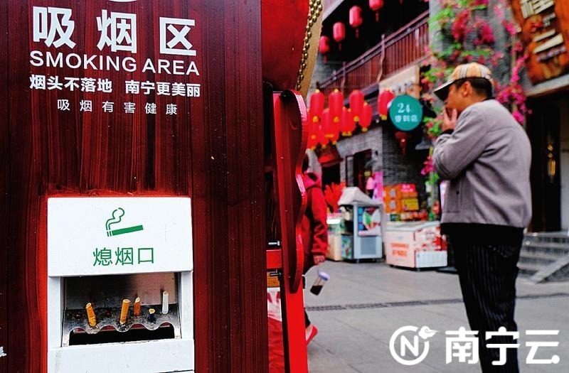 “烟头不落地,垃圾不乱扔,南宁更美丽。”在人民公园、民族广场、朝阳广场及“三街两巷”等景区、景点,一些市民吸烟后主动把烟头放到路边吸烟区的“熄烟口”,不让烟头落地。