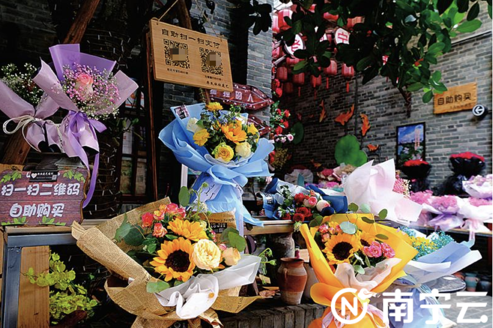 这两天,“三街两巷”来往游客络绎不绝。在历史文化街区巷角,一个露天的自助花店前,不时有过往游客在各色鲜花前合影。在摆放整齐的鲜花绿植间,一块印着“扫一扫二维码,自助购买”字样的小牌子引人关注。在店里,游客可自助购买鲜花,既简单直接又考验诚信。令人欣慰的是,开张以来,鲜花、绿植没有出现过不付钱的情况。小小的24小时自助花店,盛开着“诚信之花”“文明之花”。