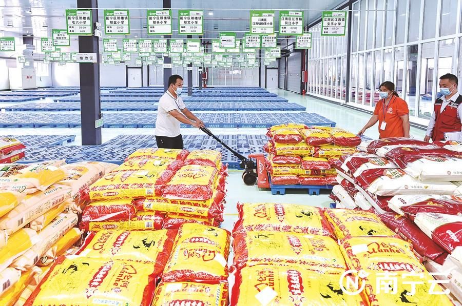 南宁市推行学校食堂治理改革,通过公开招标遴选一家企业为全市在校师生提供优质食材,解决全市学校食材采购存在的问题。图为采购的食材运达南宁威耀集采集配供应链公司冷链仓库。记者潘浩摄