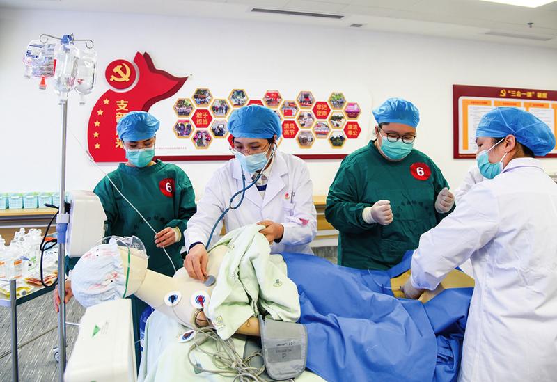 比赛现场,医务人员模拟母婴安全急救,提升技术水平和操作能力。记者黄红锦摄