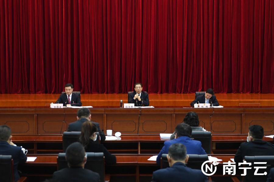1月25日,自治区党委常委、市委书记徐海荣参加市政协农工党、科协、工商联、经济界一组联组讨论,听取政协委员的意见和建议。记者陈麒元摄