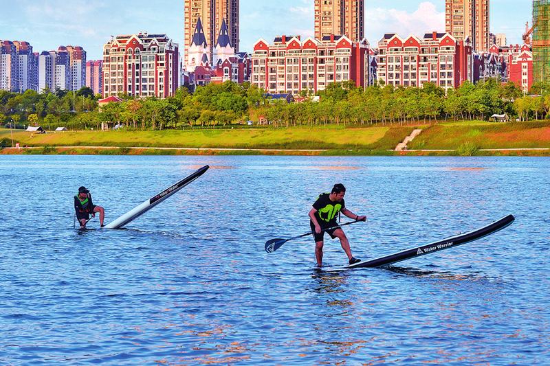 百里秀美邕江已成为市民旅游、休闲、健身、娱乐的好去处。近日,记者走访发现,在青山大桥下,有一群桨板爱好者穿着救生衣,或坐或立在平坦的桨板上,手握船桨划行,十分惬意。桨板爱好者李先生告诉记者,他们在邕江上玩桨板,既能感受邕城美景,又能锻炼身体,乐趣无穷。