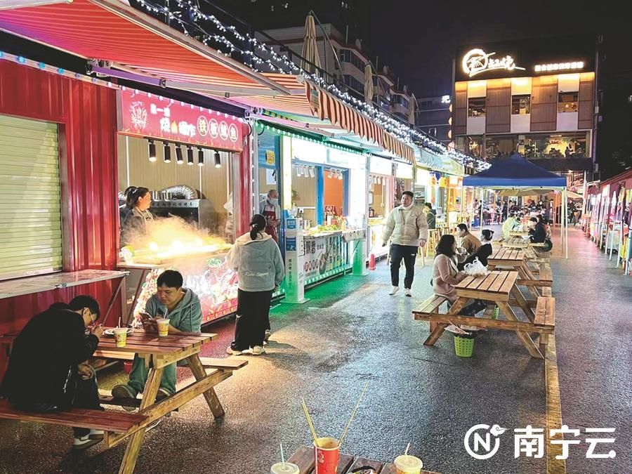 西乡塘区秀灵路东四里夜市街于2022年12月开业,以集装箱为主题,既有传统餐饮的炊烟美味,又有老少皆宜的娱乐活动,还有年轻人热衷的文创艺术。其中一块“我在东四里等你”灯光大招牌,颇具时尚浪漫色彩。广西鑫旺永利投资管理合伙企业负责人任女士说,秀灵路东四里集装箱夜市街共有110个摊位,目前已全部招租,策划打造的夜市街除了美食、购物外,还有许愿树、歌手驻唱等,成为新晋网红打卡之地。