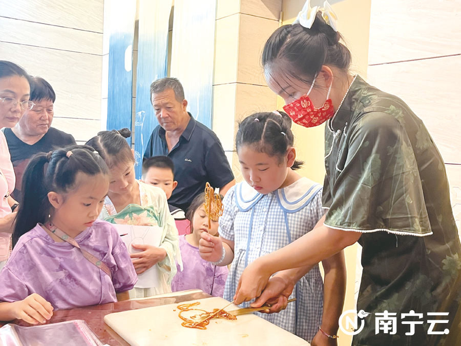 7月12日,南宁博物馆非遗研学中心迎来深受孩子们喜爱的糖画研学课《儿时记忆的甜》。大家在博物馆老师的带领下学习糖画的历史,并在糖画艺人的指导下绘制糖画作品,尝尝夏日里的甜蜜滋味。