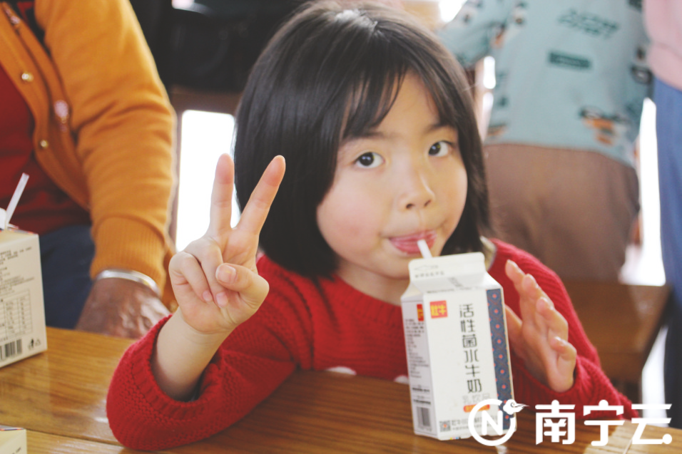 小朋友品尝水牛奶。记者 覃锦华 摄