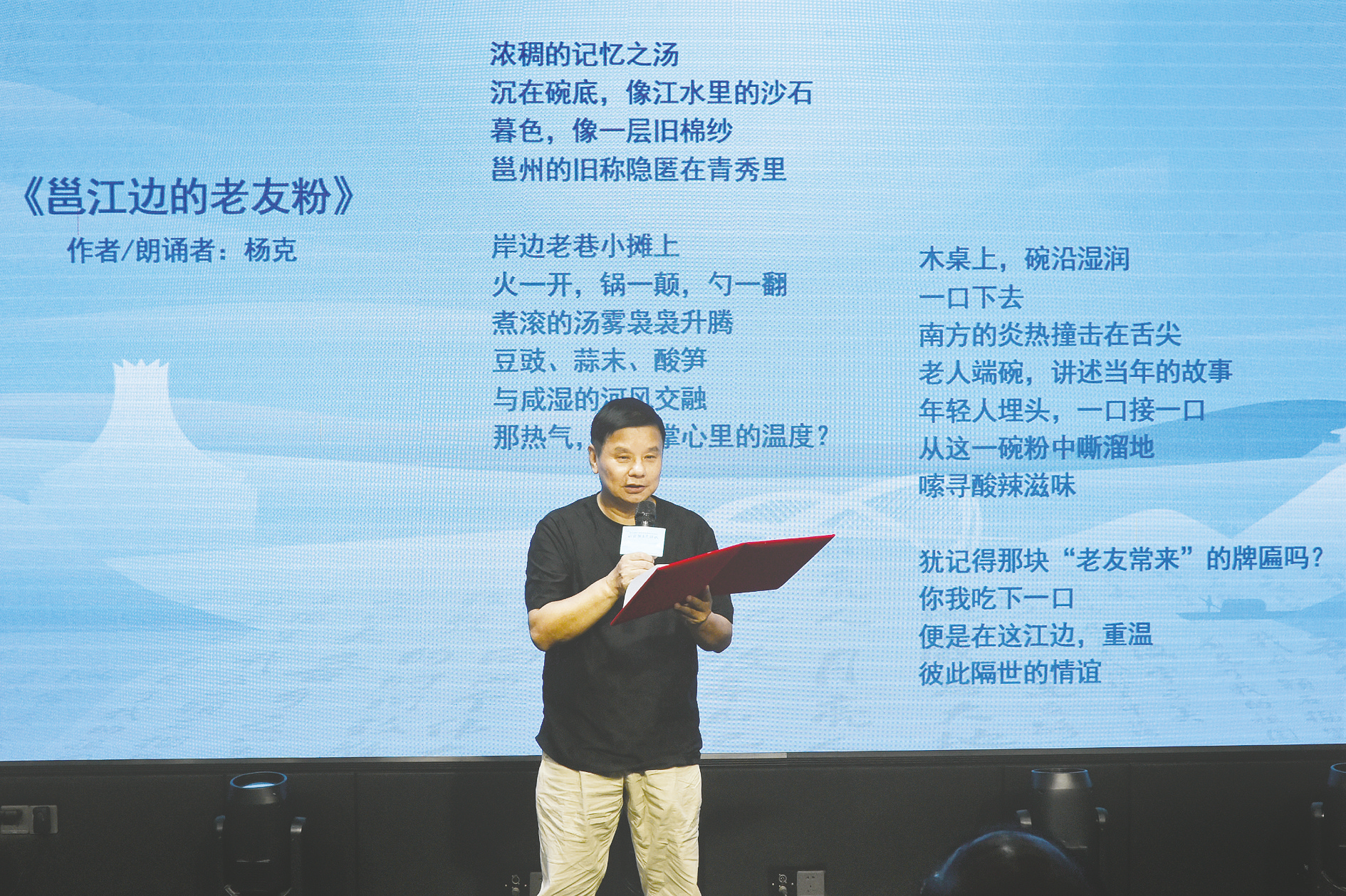 在第二届南宁国际诗歌周朗诵会上,诗人杨克朗诵诗歌《邕江边的老友粉》。记者 梁枫 摄
