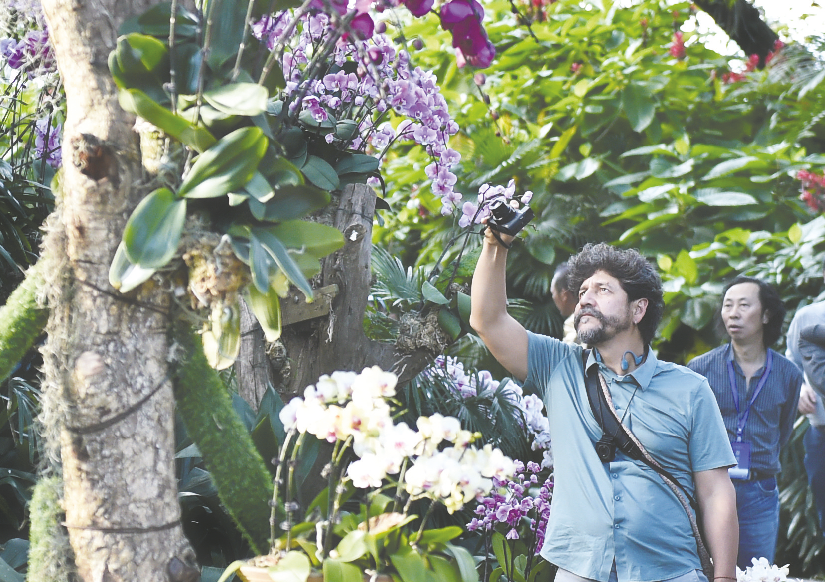 在青秀山风景区兰园,大家在满园花香中感受初冬绿城的诗情画意。记者 潘浩 摄
